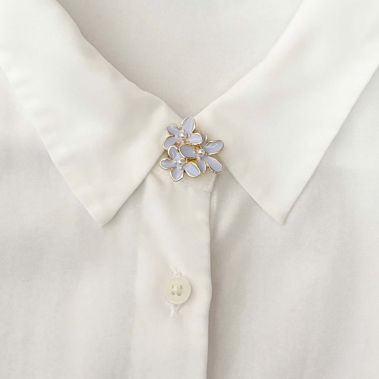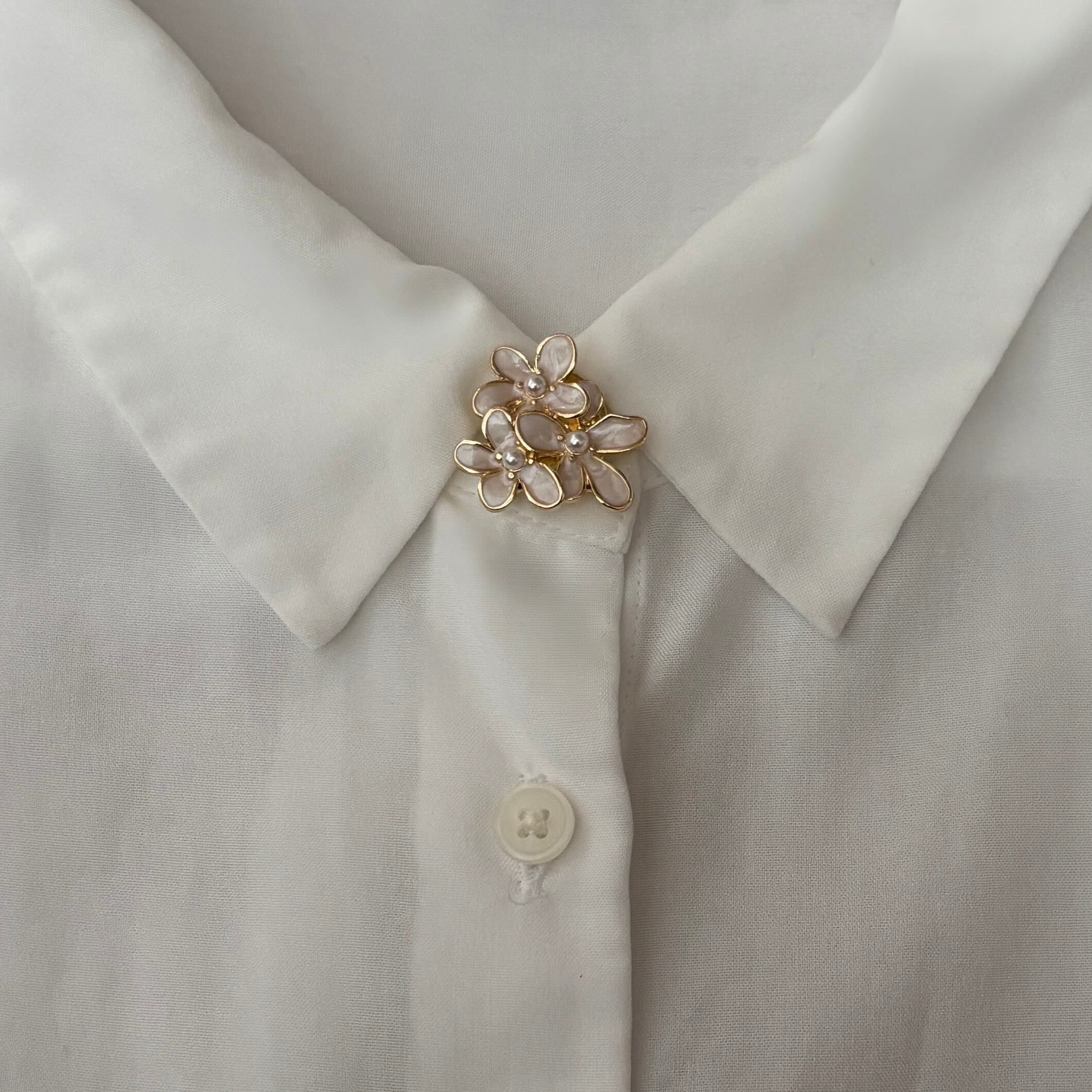 優しく光るパールを花の中心に添え、手元や胸元をさりげなく華やかに彩ります。
