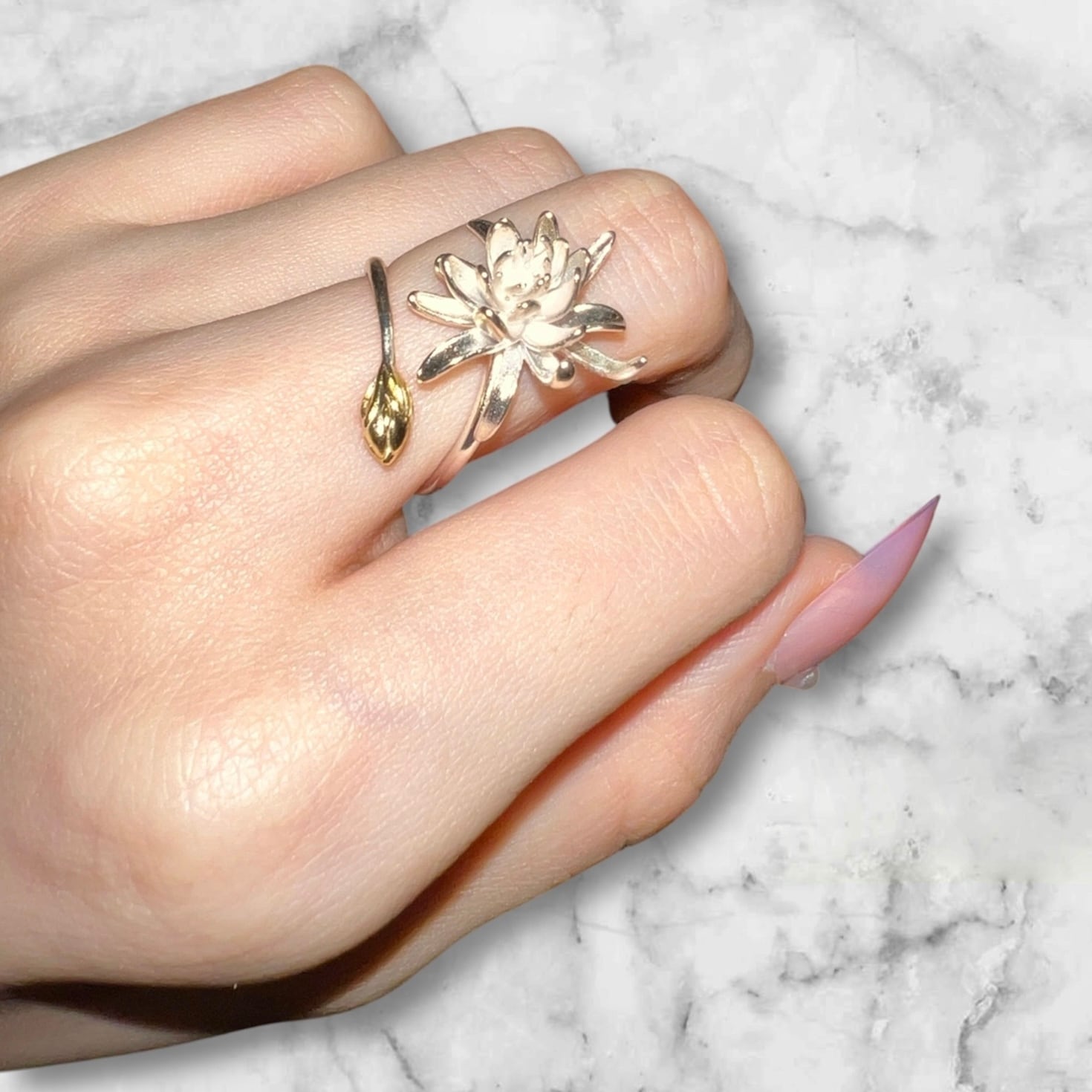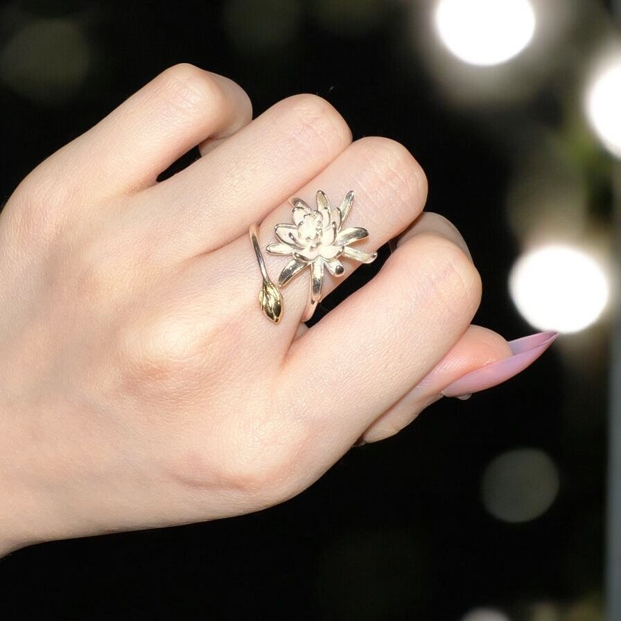 月下美人をイメージしたシルバー925フリーサイズリング。