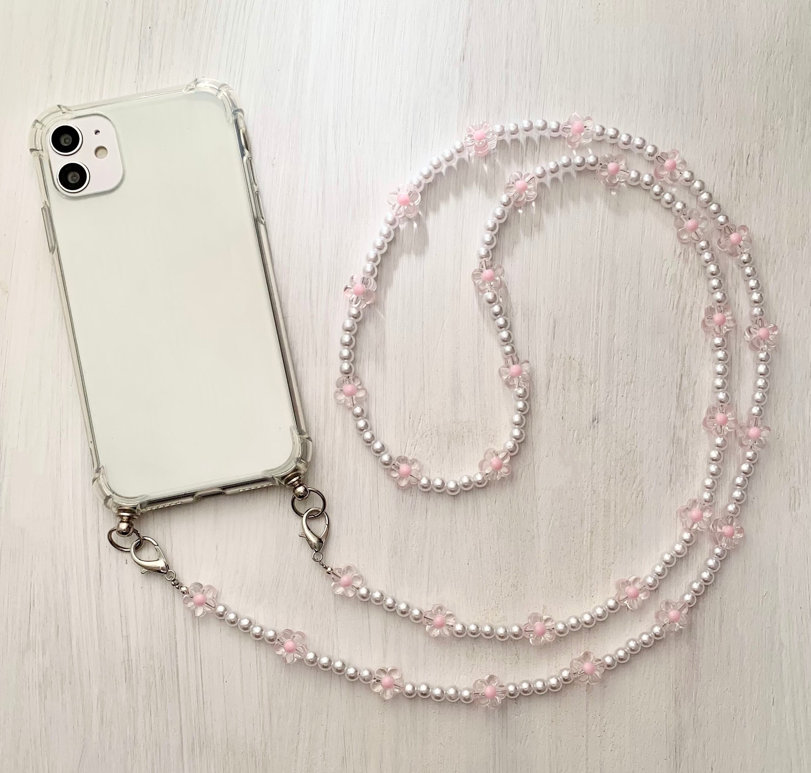 華やかなさくらデザイン:さくらの可愛らしいビーズと上品なパールが組み合わさったショルダーストラップです。見るだけで心が和むお花のモチーフが、日常のスタイルに華を添えてくれます。