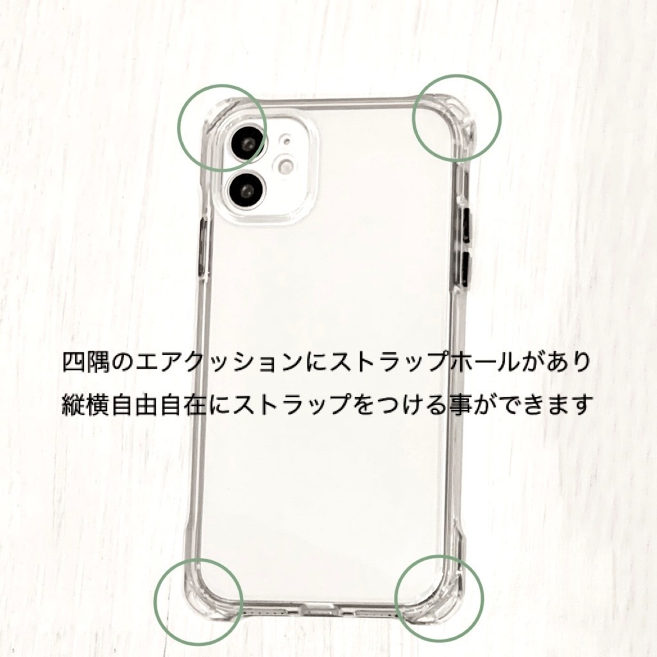 写真3〜6枚目の四隅のエアクッションにストラップホールがある縦横自由自在のクリアケース(レンズ保護あり)にご購入の場合はオプションのご選択をお願いいたします。