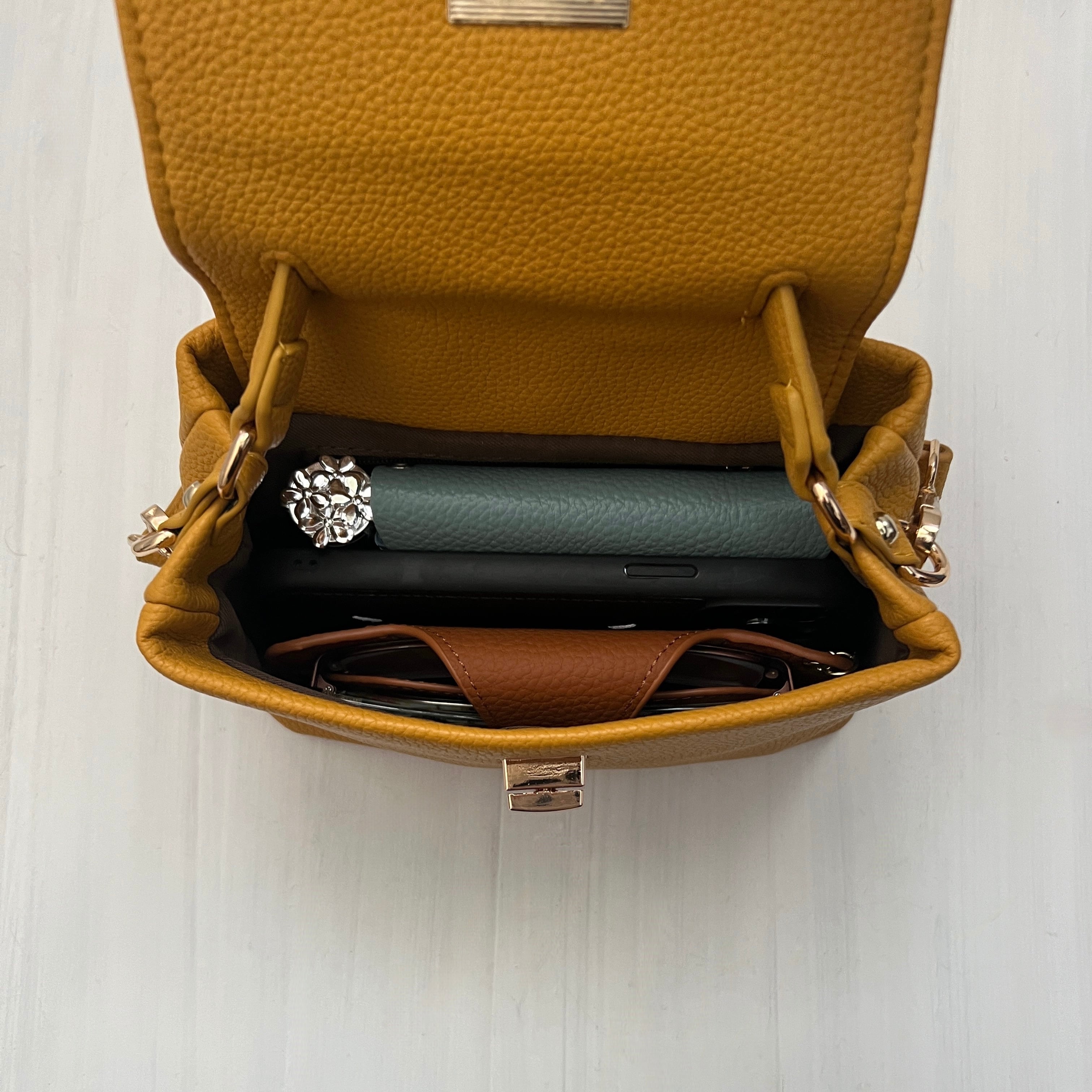 シンプルでありながら存在感のあるデザインが特徴のハンドバッグ。丸みを帯びた柔らかなフォルムが、持つ人の肩に心地よくなじみます。デイリー使いのさりげないアクセントに。使い勝手の良いサイズ感で、身だしなみも荷物もきちんと収納できるバッグです。 どこか懐かしく、でも新鮮な気持ちを呼び起こすハンドバッグ。日々の忙しさや疲れを癒やし、リフレッシュしたい時にぴったりのお供になることでしょう。