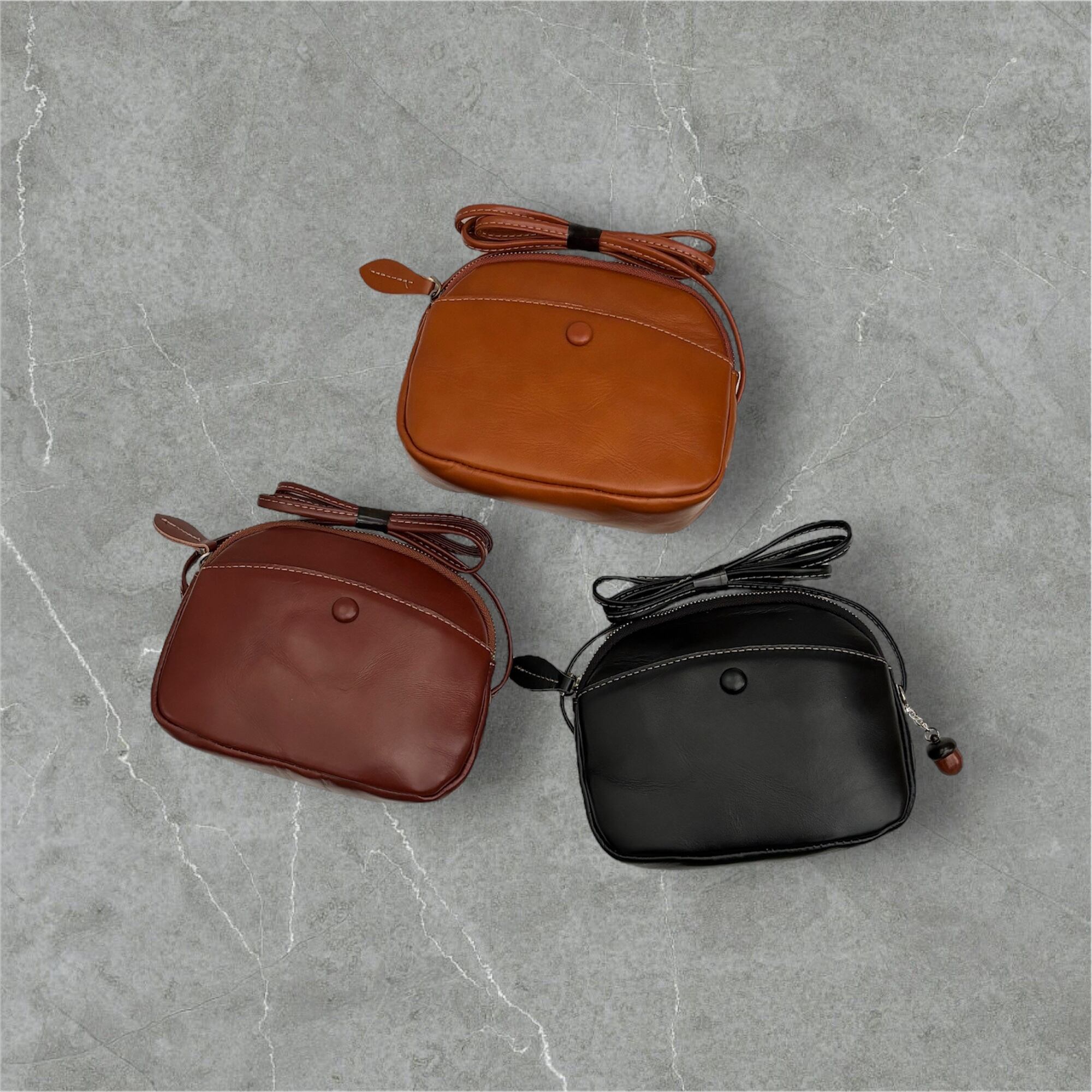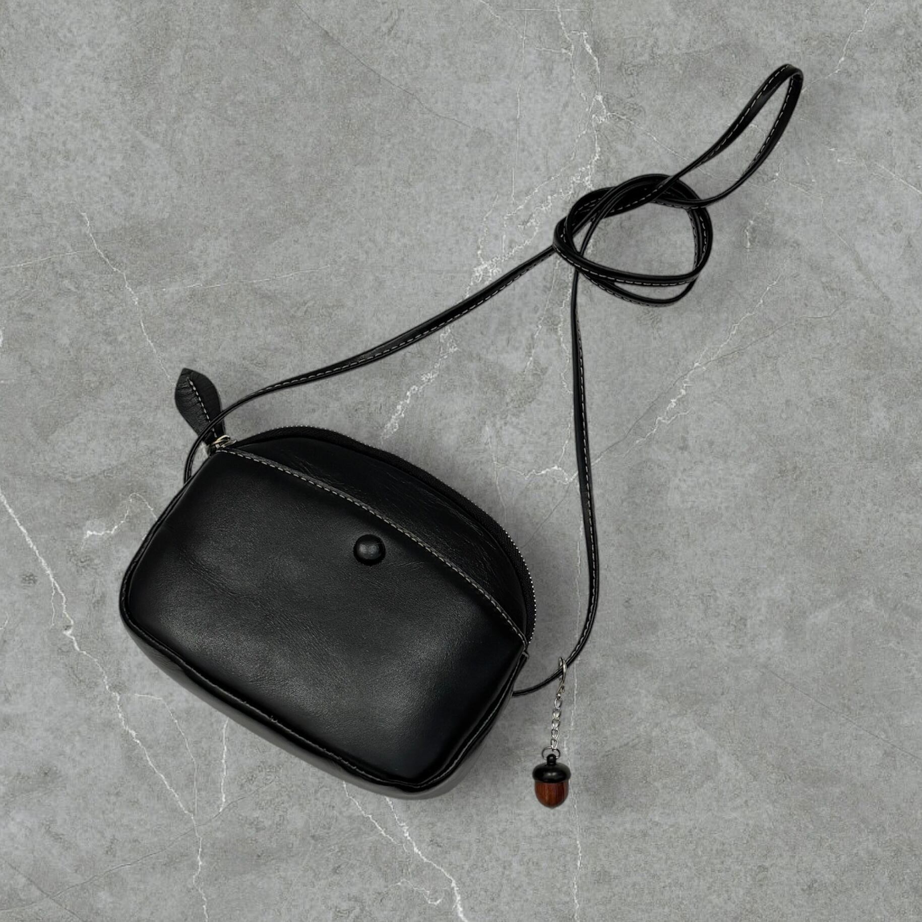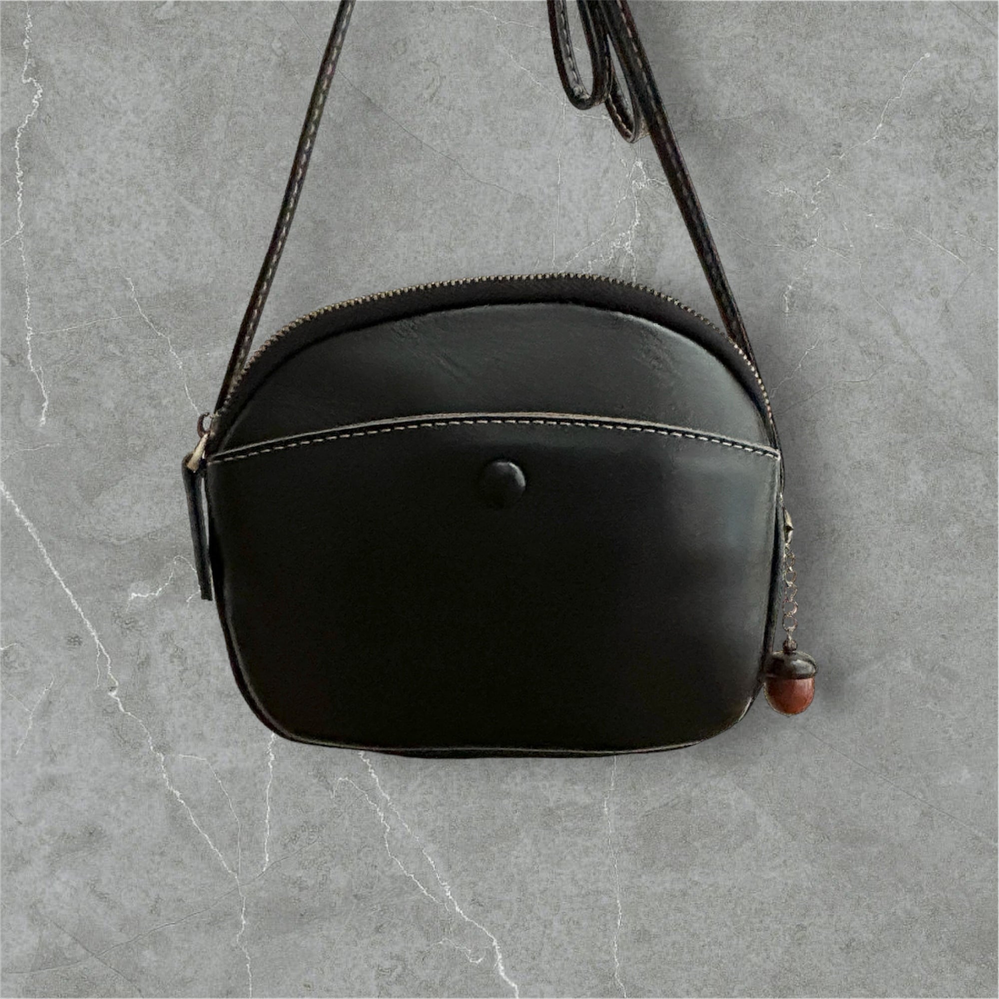 ころんとした丸いフォルムが愛らしい本革スマホポーチ。ファスナーの引手には葉っぱのデザインを取り入れ、自然の優しさと遊び心をプラス。上質な革と細部にこだわったデザインで、毎日のお出かけがもっと楽しくなるアイテムです。