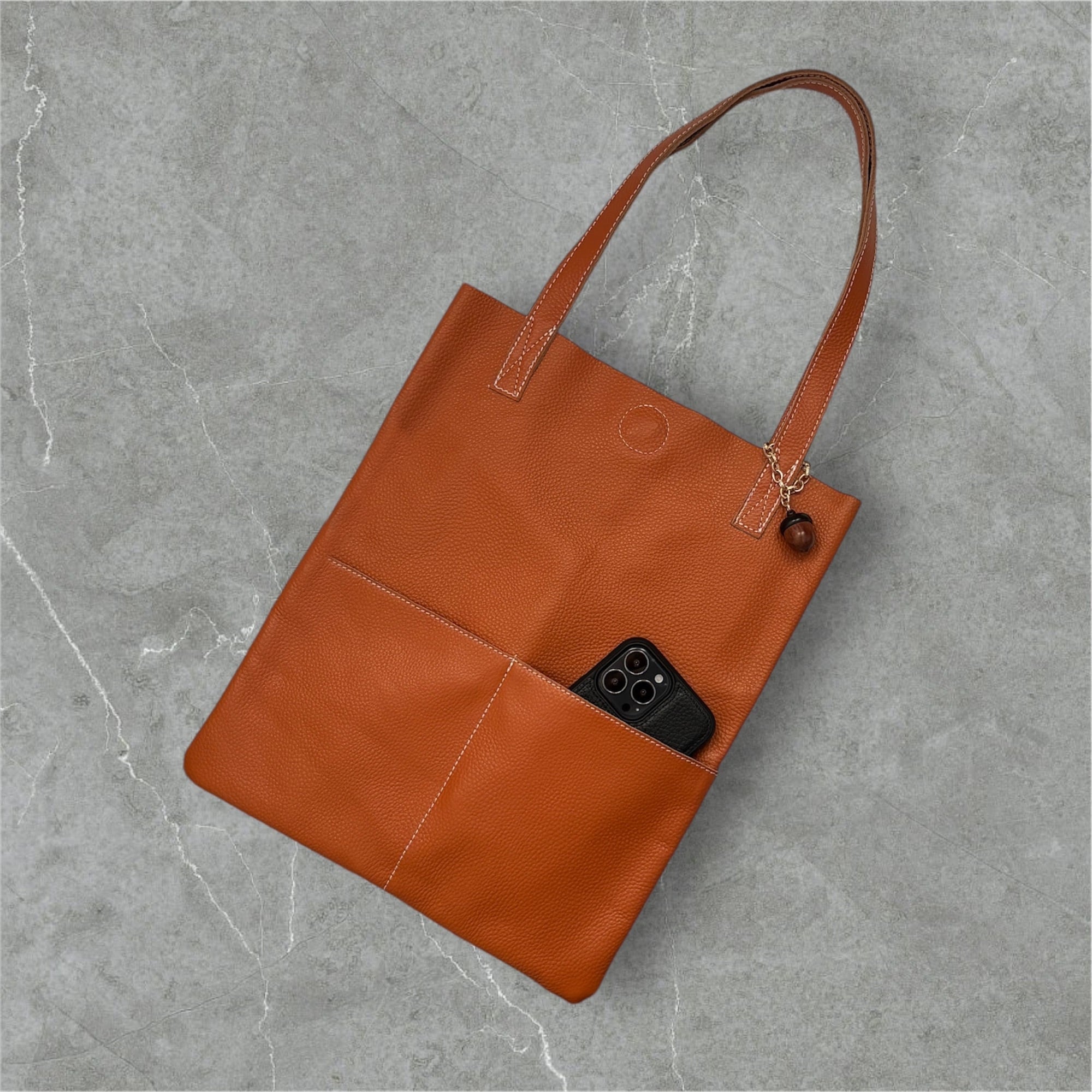 上質な牛革を使用したトートバッグ。手触りが良く、使い込むほどに味わいが増す本革は、長く愛用できるおすすめの逸品です。A4サイズに対応しており、通勤通学はもちろん、ショッピングや旅行など様々なシーンで活躍してくれます。シンプルでベーシックなデザインなので、どんなファッションにも合わせやすく、使い勝手も抜群です。