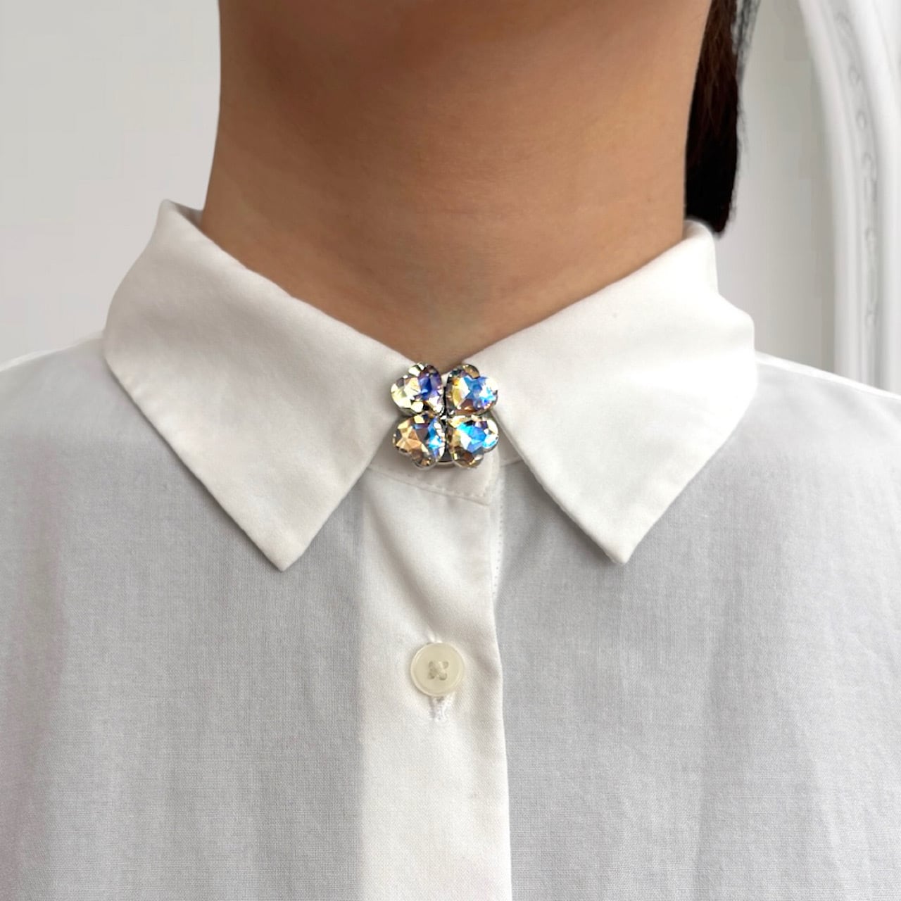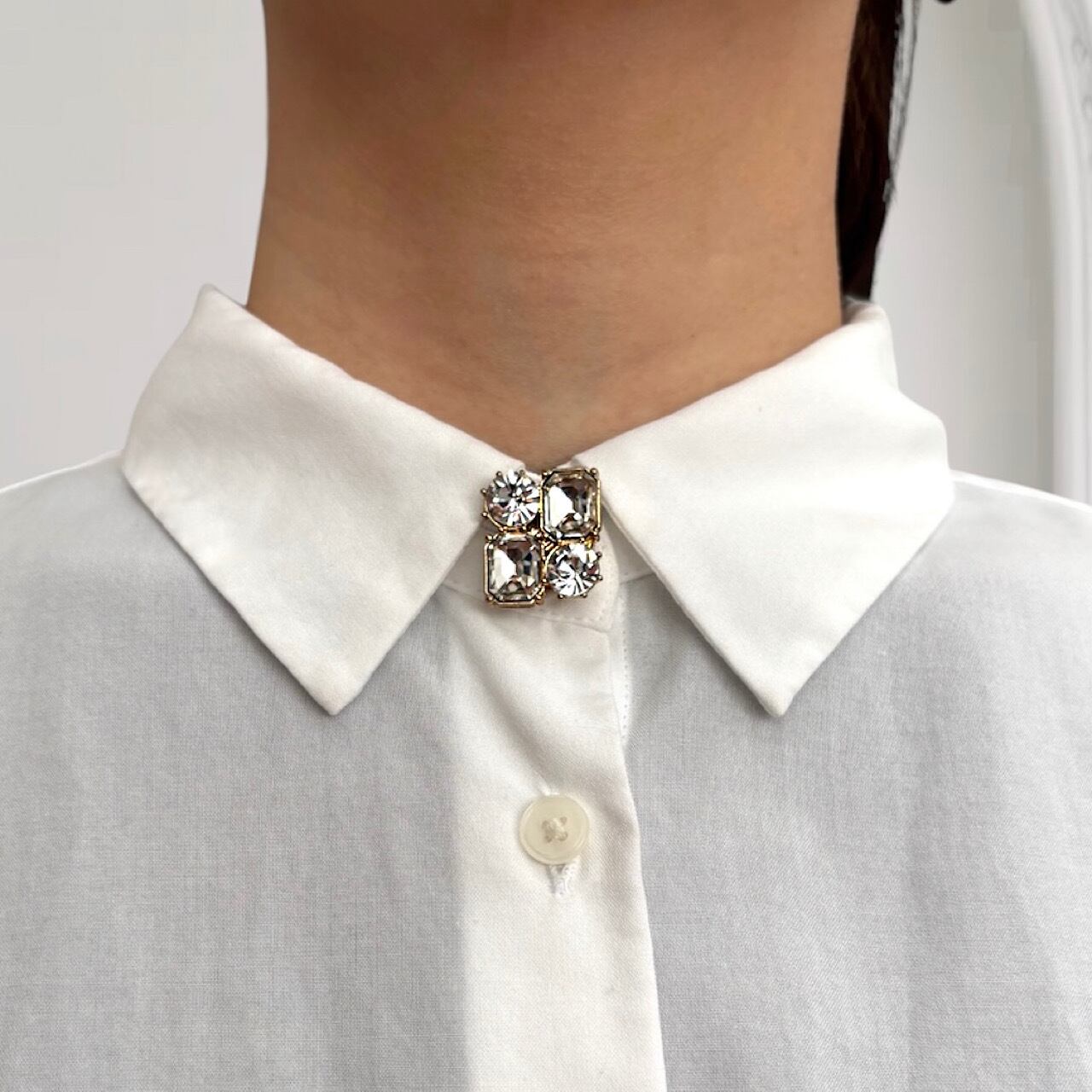 シンプルなシャツが一気に華やかに変身!上品なラインストーンの輝きで、さりげないおしゃれを叶えます。ラインストーンのきらめきが、上品でありながら存在感のあるアクセントに。
